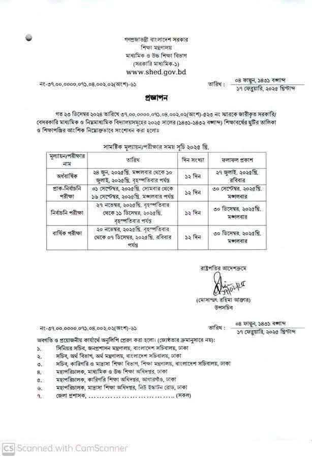 নির্বাচনী পরিক্ষা ও বার্ষিক পরিক্ষা রুটিন ২০২৫ ইং |