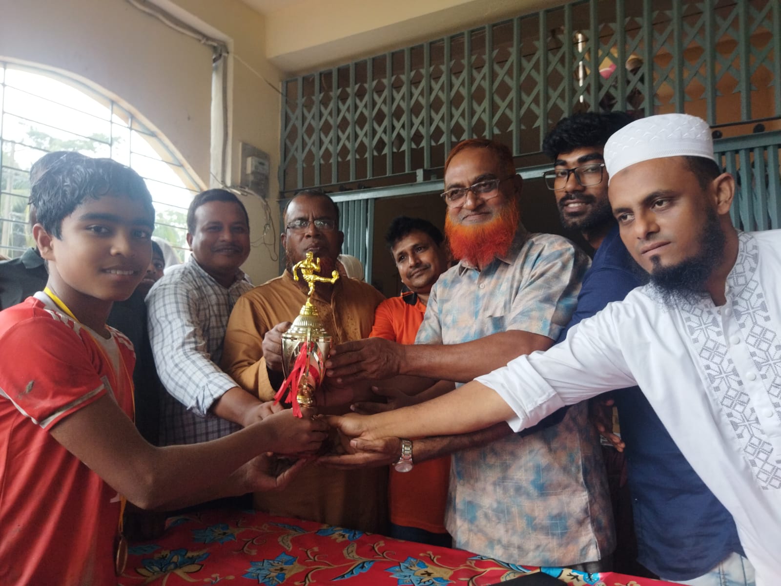বিদ্যালয়ে আন্তঃফুটবল প্রতিযোগিতা শেষে পুরষ্কার গ্রহণ